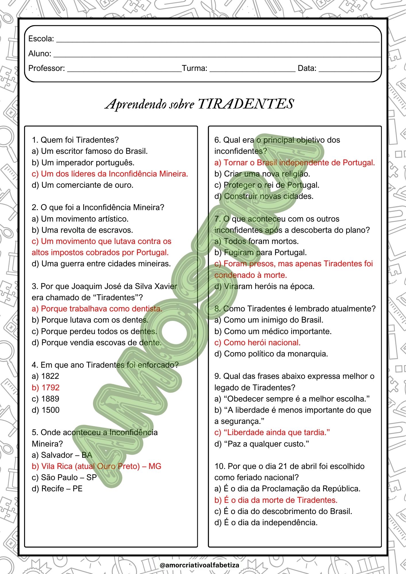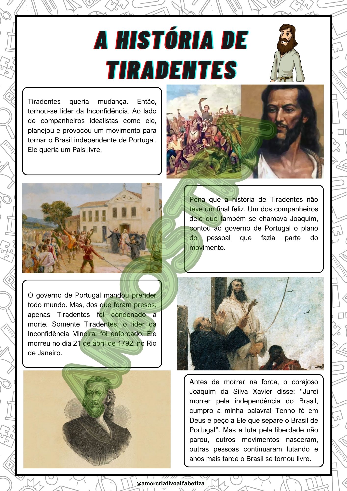 📌 Um material ideal para abordar o Dia de Tiradentes (21 de abril) com profundidade, linguagem acessível e conexão com a realidade dos alunos.