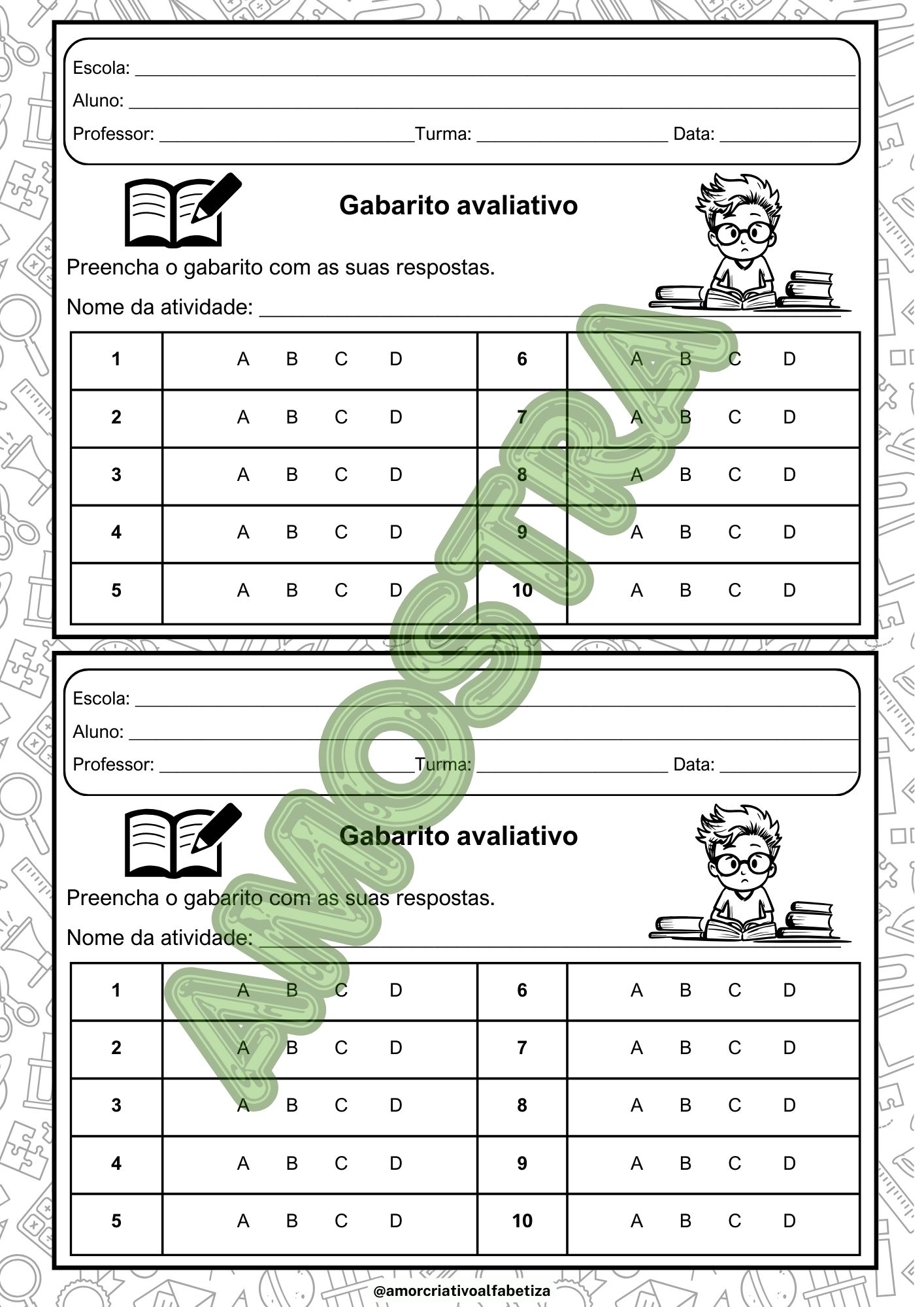 ✔️ Folha de respostas para o aluno