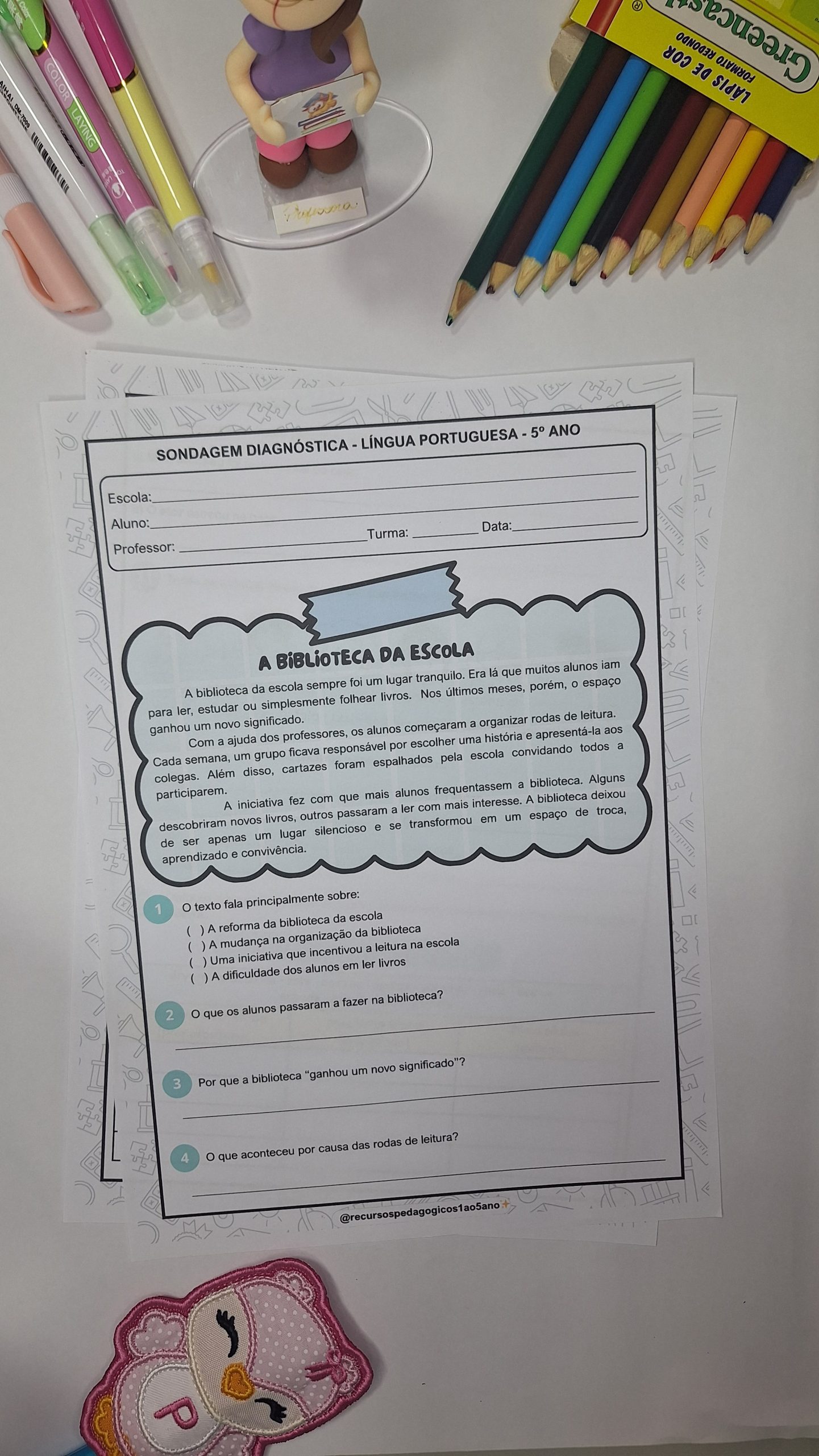 O Combo Avaliação Diagnóstica – 5º Ano (Português + Matemática) foi criado para fechar os Anos Iniciais com responsabilidade pedagógica, identificando o nível de autonomia do aluno.
