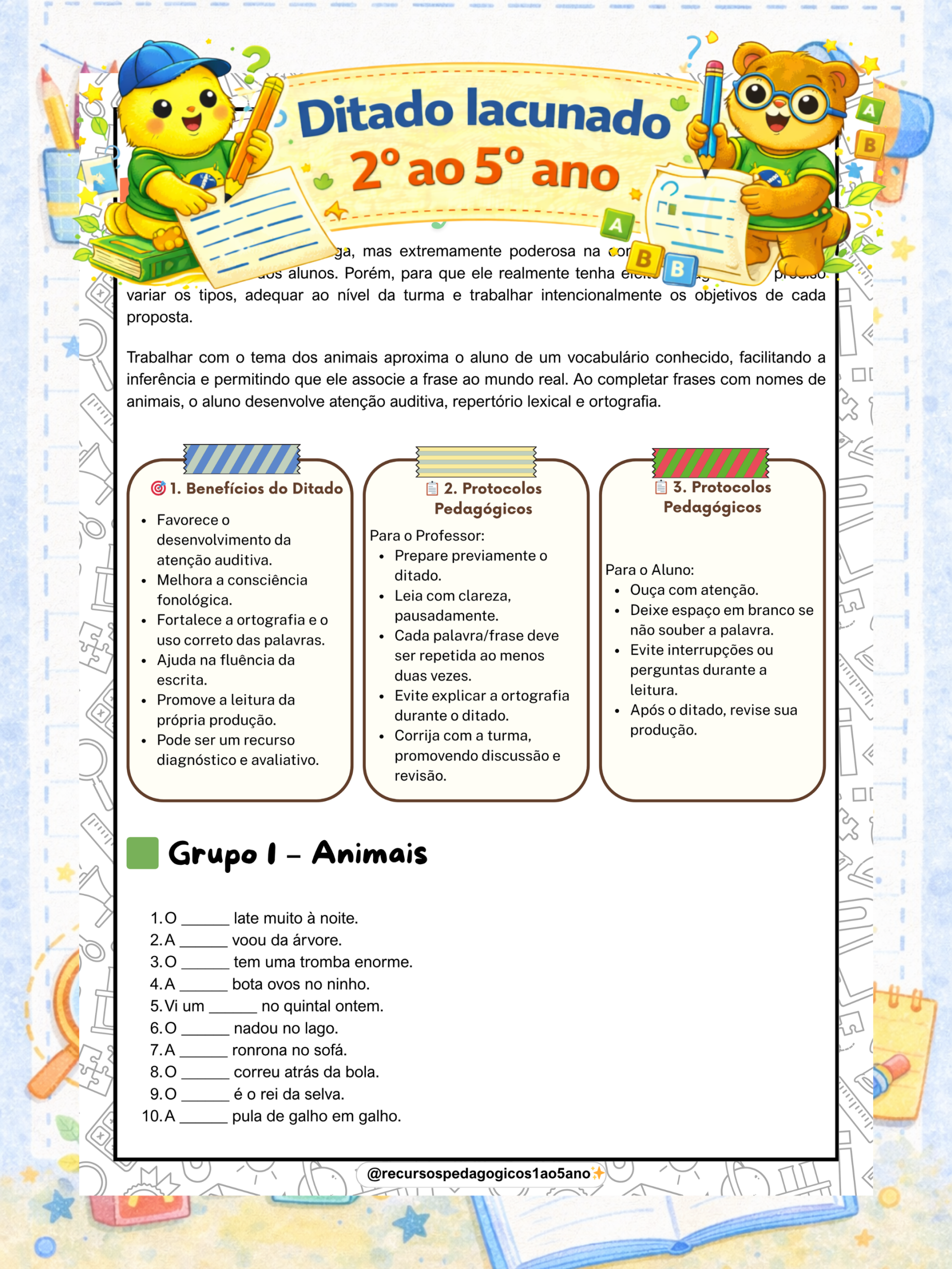✔️ Fichas organizadas de ditado lacunado