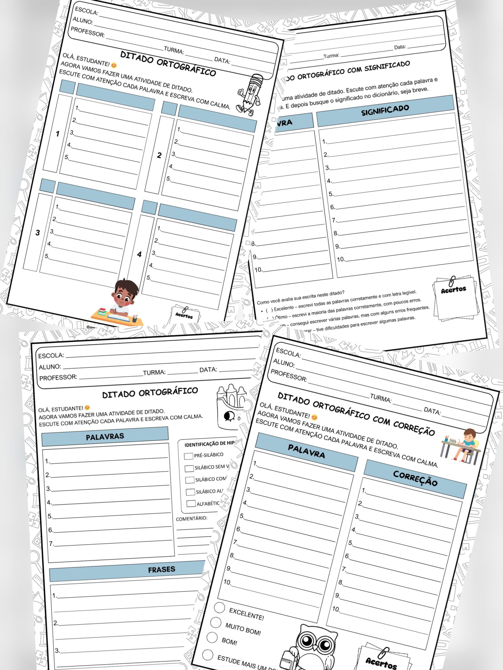 Aqui você transforma o ditado em uma ferramenta estratégica para diagnosticar, acompanhar e fortalecer a escrita dos seus alunos todos os dias. 🚀✏️