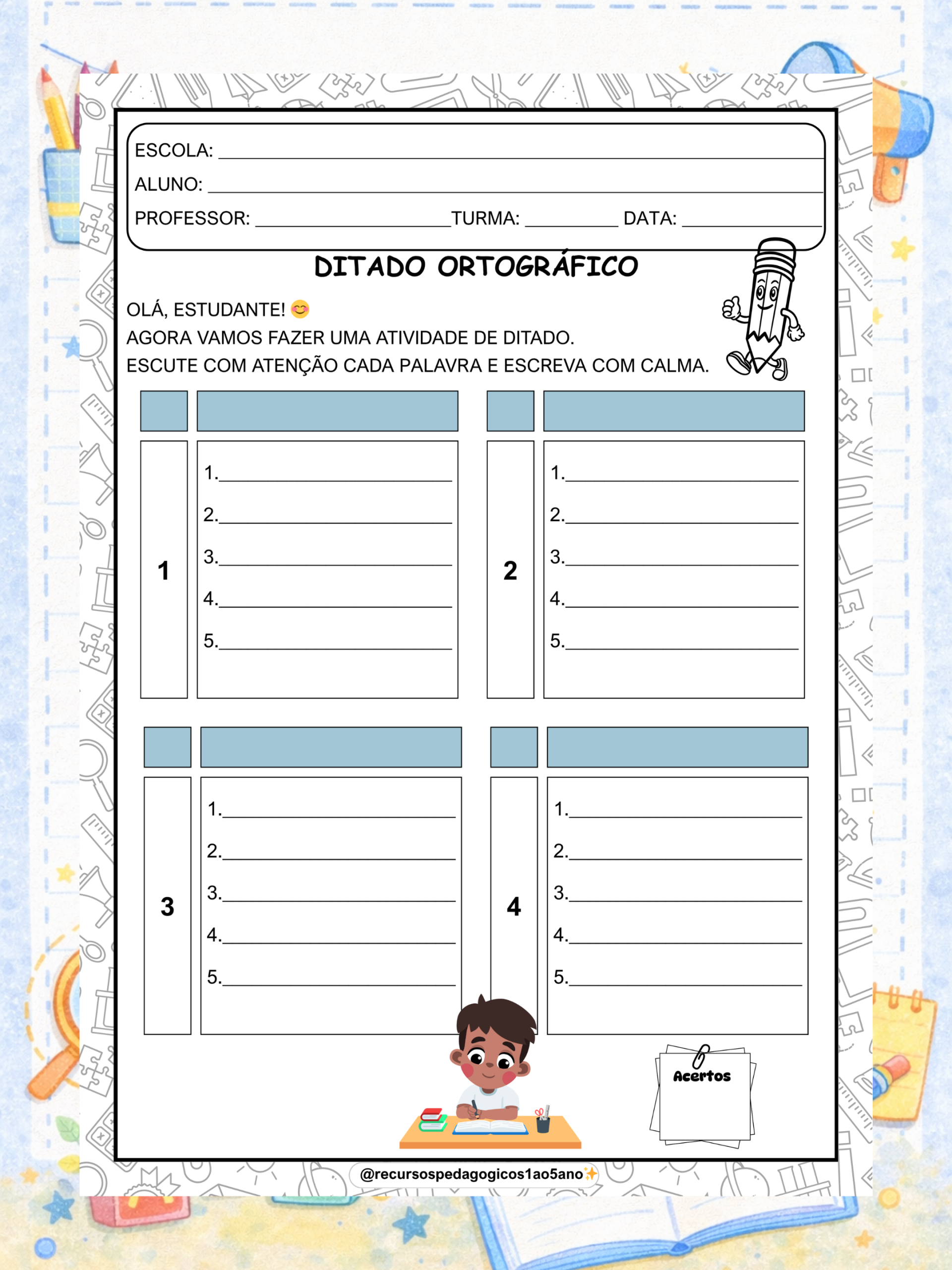 Aqui você transforma o ditado em uma ferramenta estratégica para diagnosticar, acompanhar e fortalecer a escrita dos seus alunos todos os dias. 🚀✏️