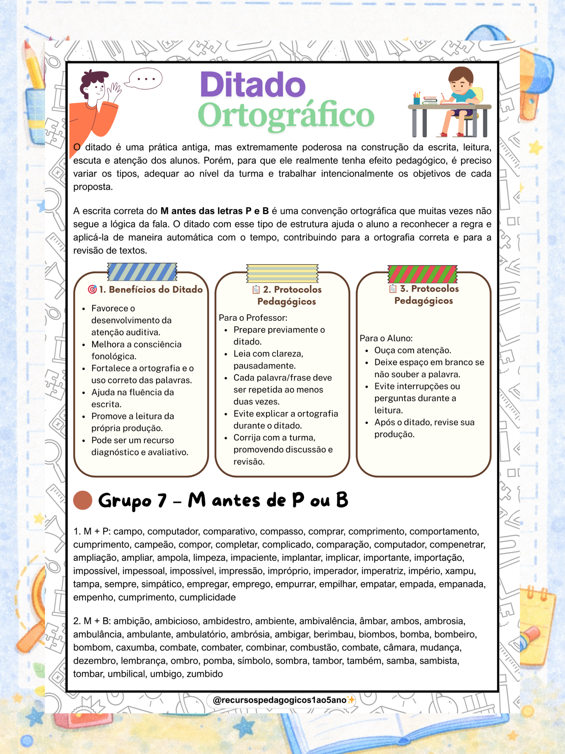 🎁 Bônus especial: você ainda recebe o e-book Ditados na Prática, com orientações pedagógicas para aplicar o ditado de forma intencional durante todo o ano letivo. 💡📚