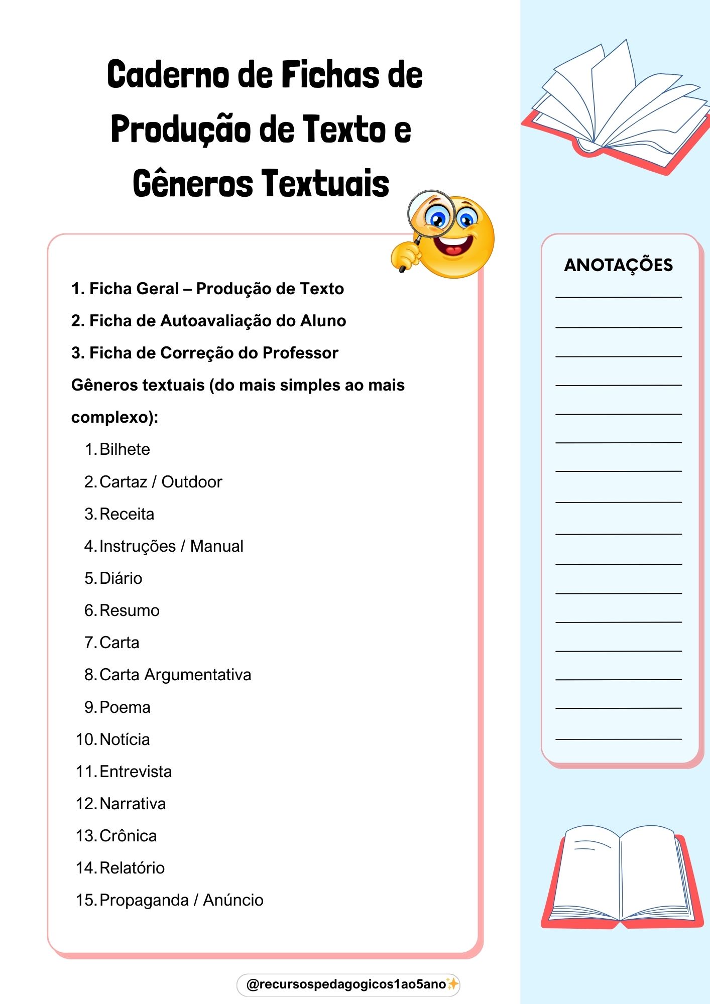 📚 Fichas de Produção de Texto e Gêneros Textuais 4º e 5º ano + Livrinho